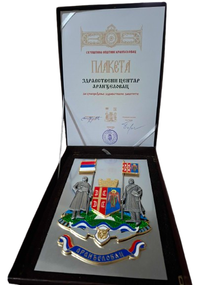 У име Здравственог центра Аранђеловац награду је примила директорка Дома здравља др Љиља Терзић спец. опште медицине.